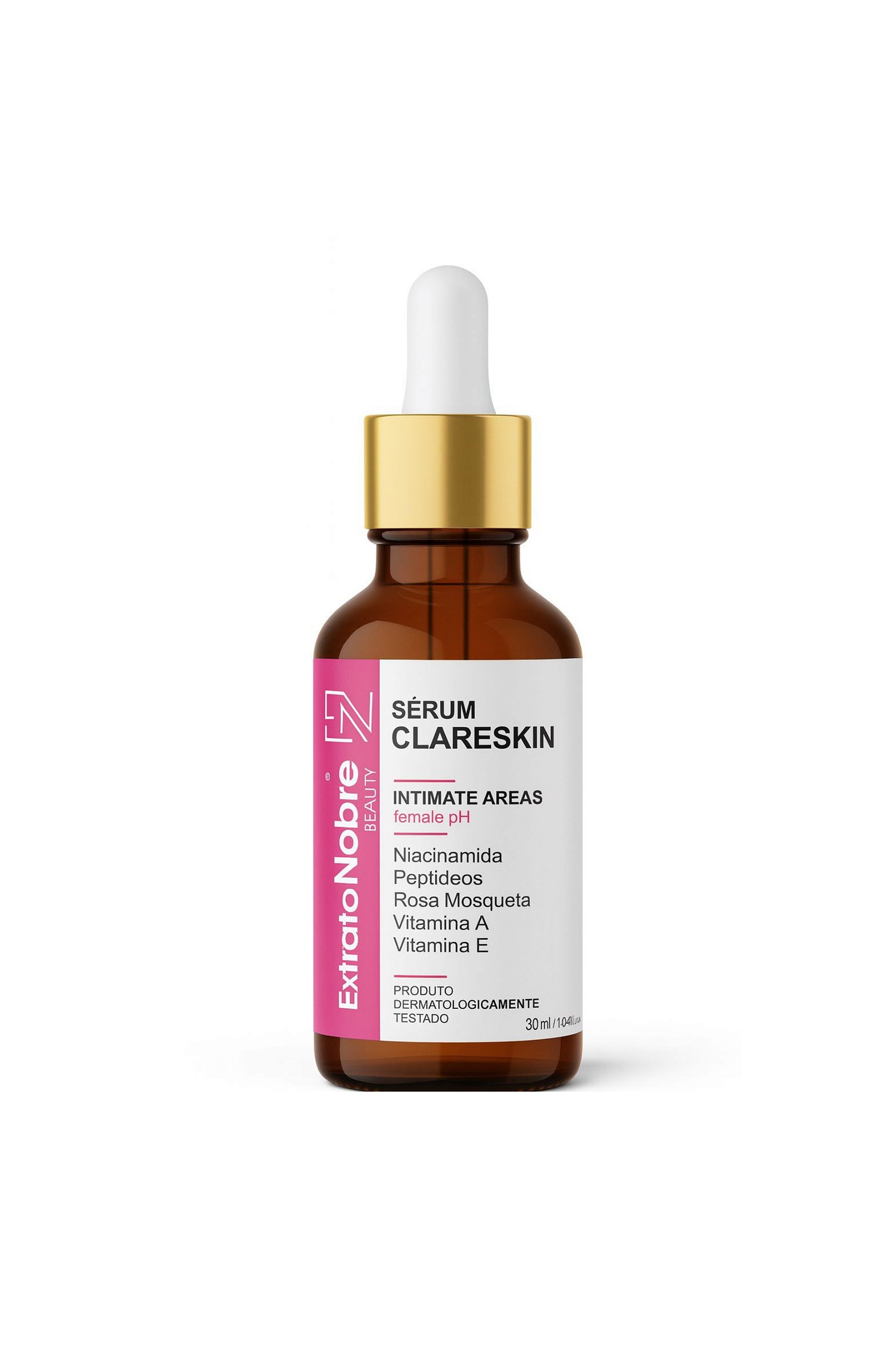 MODO DE USAR: 1- Higienize a área com sabonete suave e seque com toalha limpa, sem friccionar. 2. Aplique algumas gotas de CLARESKIN diretamente sobre a área desejada (axilas, virilha, ao redor do ânus ou nas partes escuras da vulva). 3. Massageie suavemente com as pontas dos dedos até completa absorção. Fase inicial (1ª a 2ª semana):Use 1 vez ao dia, preferencialmente à noite, para testar a tolerância da pele.Após adaptação:Se não houver sinais de irritação, aumente para 2 vezes ao dia (manhã e noite).Não usar após depilação.